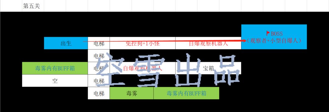 6、第五关大BOSS为观察者,该BOSS与昆西无限5BOSS相同,该BOSS房间有1个小型自爆机器人,其打法与昆西一致,此处不再赘述。