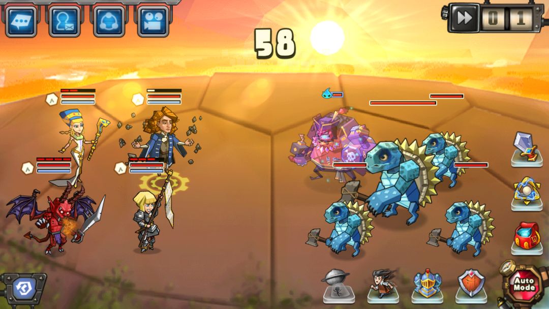 游戏的战斗模式是以英雄速度来决定攻击的先后顺序,一共可以出场4个英雄,攻击分为普通攻击和技能。而且游戏里还可以对场景内的怪物进行捕捉(有点宠物小精灵的味道),捕捉玩之后可以选择战斗培养或者卖掉或者与其他玩家交易。。。