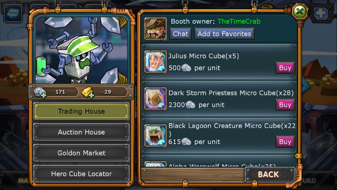 在市场里面基本上所以的东西都可以交易,包括英雄还有英雄碎片已经其他的补给品等等。和一般游戏一样,这个游戏也有竞技场,不过竞技场可以选择与在线玩家即时对战和与离线玩家对战这2种模式,还有赌博系统和师徒系统。。。卧槽,这游戏还有师徒。。。