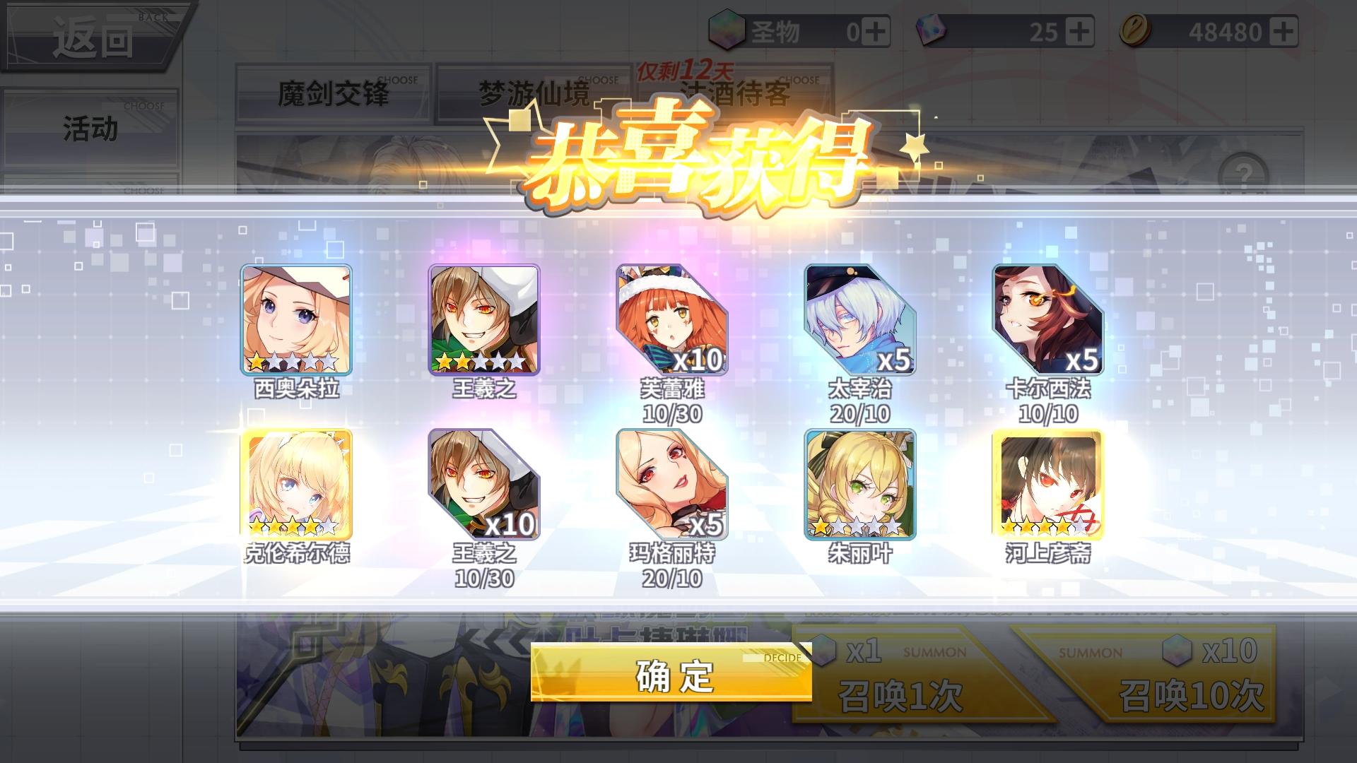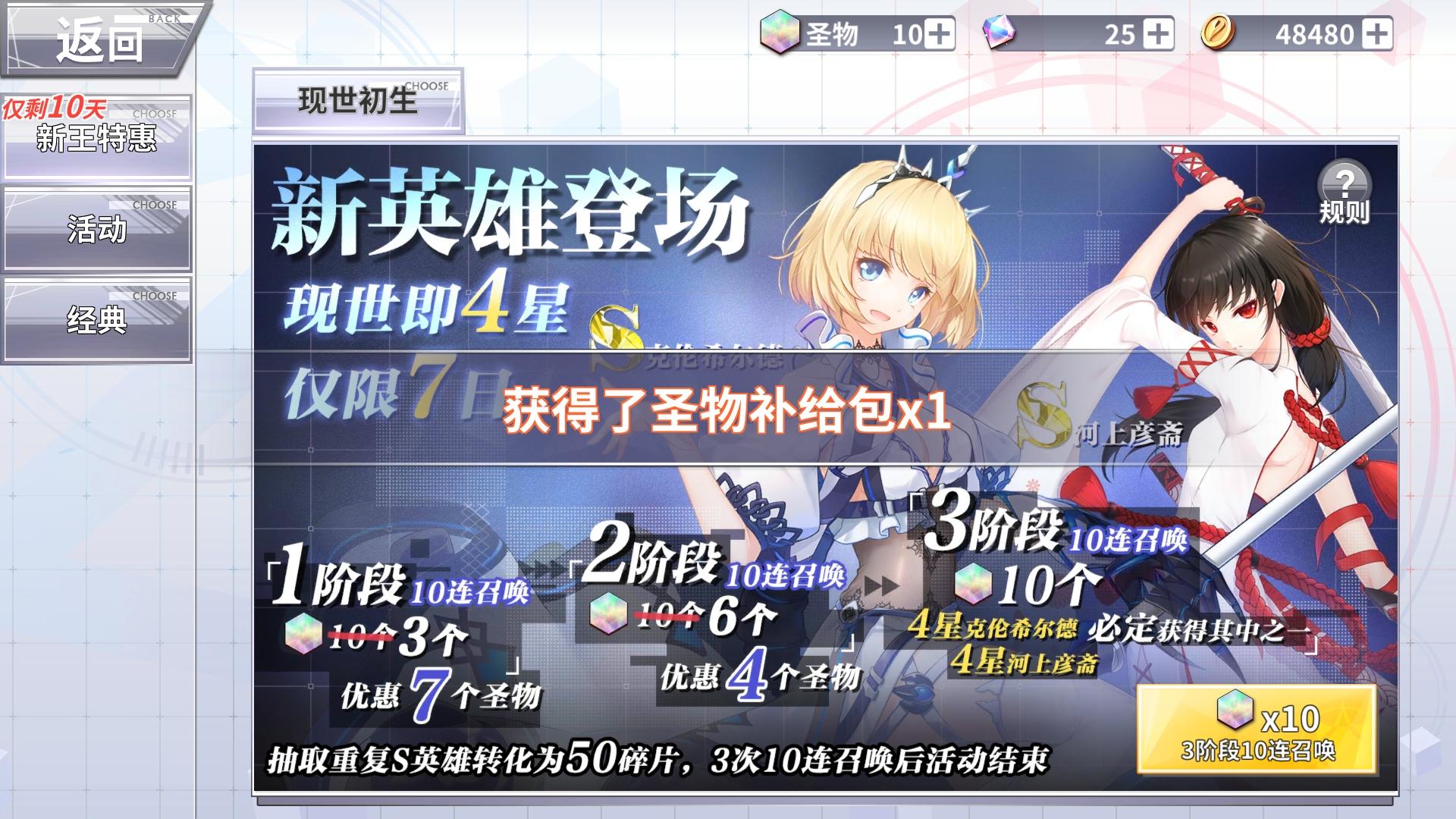 嘛,花了3小时玩了一下,活动的3阶段都搞完了,跟公测比起来这次的养成是真的快速了很多,活动送一个四星s。学院送五星兰斯洛特,开局随便打打美羽也能四星,也就是说前期不用多费力就能瞬间四星队,而且延续了之前的送卡活动(炽炎四杰)这就大大加强了你的全队伤害,这游戏的卡牌还是很重要的,刚打竞技场就是靠卡牌越级杀人。出货率比之前低了一些,但好在活动的出货率还是能保证你有四星s能用的,技能也不错,总之推荐玩,毕竟石头什么的,还是挺好拿的