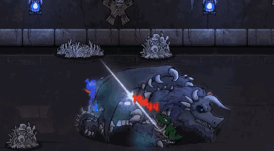 “闻到饵食的味道,不管在哪都会冒出来”形容的便是鲨鱼饵这把武器。鲨鱼饵的外形十分有趣,双刃分别是一块烤肉和一块腐肉的形状。其攻击值不高,但有着20%的暴击加成,配合双刃类武器快速的攻击速度,可以产生较为客观的伤害。鲨鱼饵为召唤类的武器,技能“鲨鱼”可以召唤出一条大鲨鱼咬一口,范围内的怪物都会被击中。这个技能的伤害属于中上,但是冷却时间较长,因此只能算是一把中规中矩的武器,但却可以是过关中期时玩家的好伴侣。
