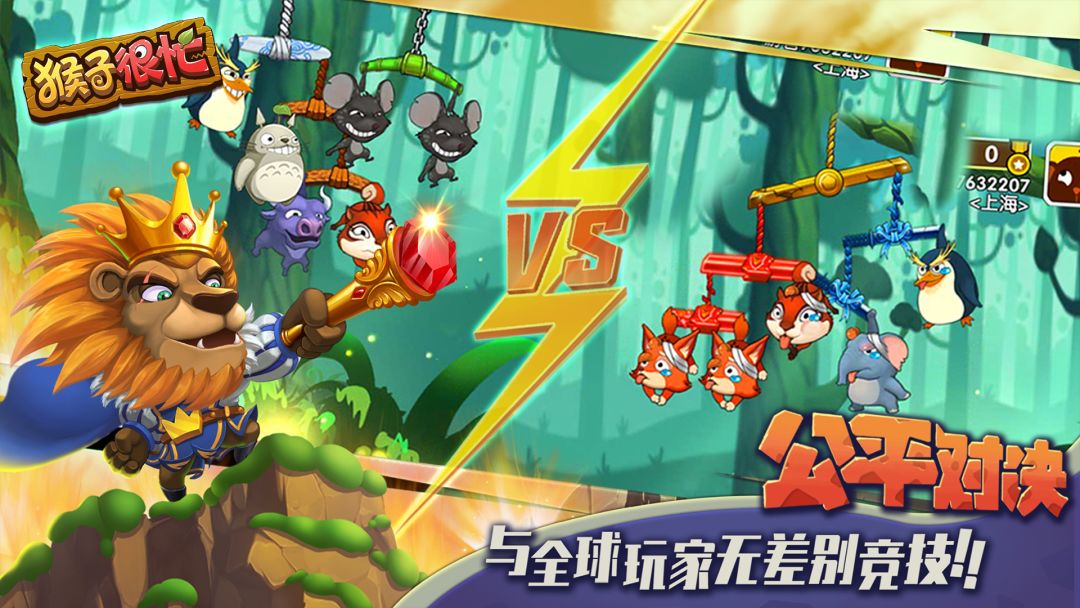 《猴子很忙》的一切发生在森林之中,战斗方式延续了经典传统的弹射玩法,但又推陈出新,将繁复的操作简化为“一指禅”。只需一根手指便可与对面的玩家一较高下,操作简单易上手,却又将策略浓缩蕴含在对战中。《猴子很忙》为玩家提供了数十种动物、技能、武器,玩家可进行自由组合,创造属于你的独家阵容。