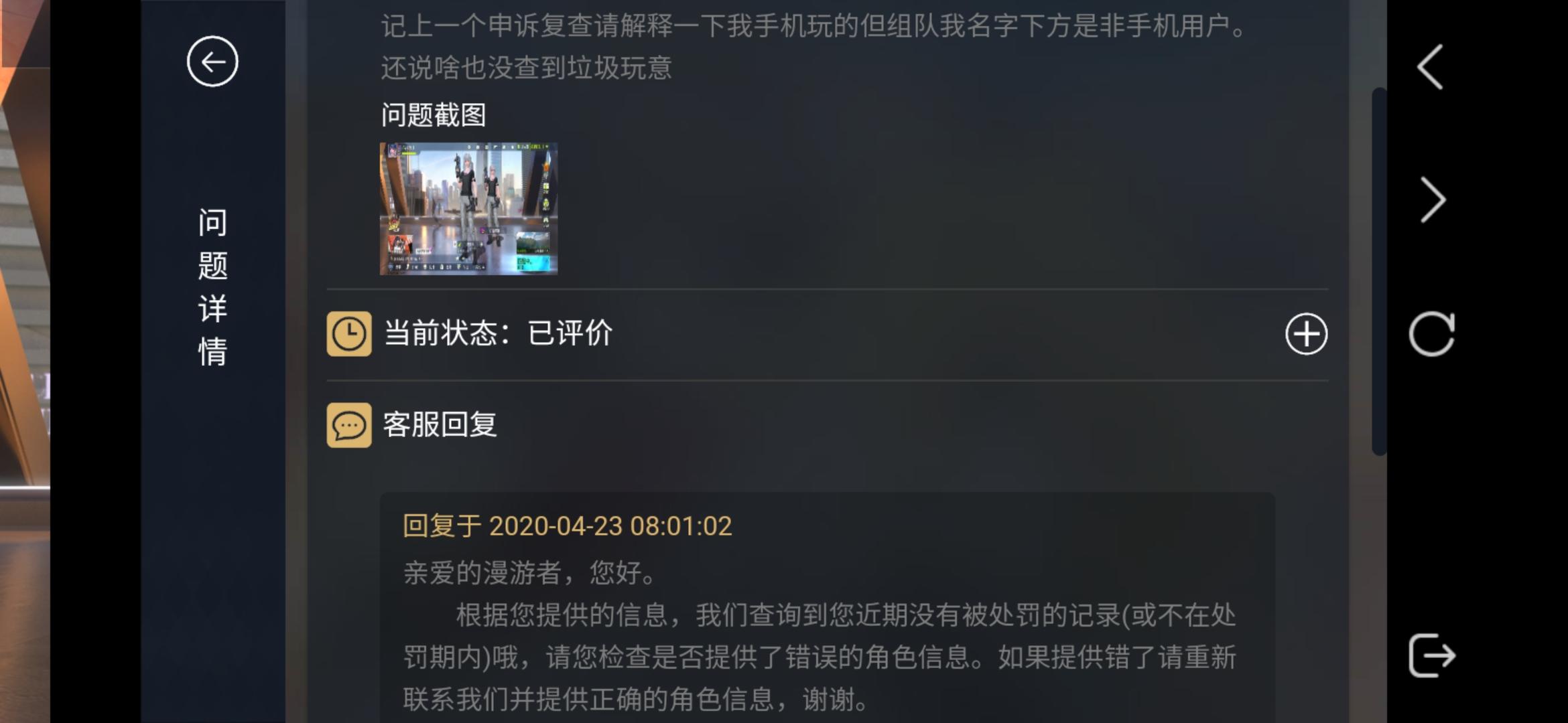 检测非官方外设的系统希望官方重视一下!我看论坛里每天都有不少的误检反馈建议赶紧修复!我两个朋友和我情况一样就一个手机没手柄和什么某宝的开枪按钮刚捏完脸打两把也成这个样子了,现在他俩已经差评一点退坑了再这样下去分低留不住人就等凉了。