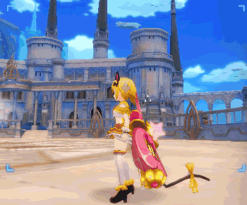 轻飘飘的露脐装穿在炼金身上,性感之外,更多是俏丽活泼的气质。高级材质织就的黄金舞台装与她的金发十分相衬。变成了偶像手杖的巨锤武器,加上头上佩戴的猫耳发箍,是能让所有粉丝为之疯狂的最强组合。
