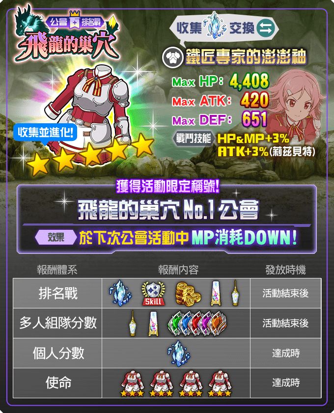 另外,活動期間達成公會使命,就可以獲得增加於道具交換所的★3防具,可進化為★5!!