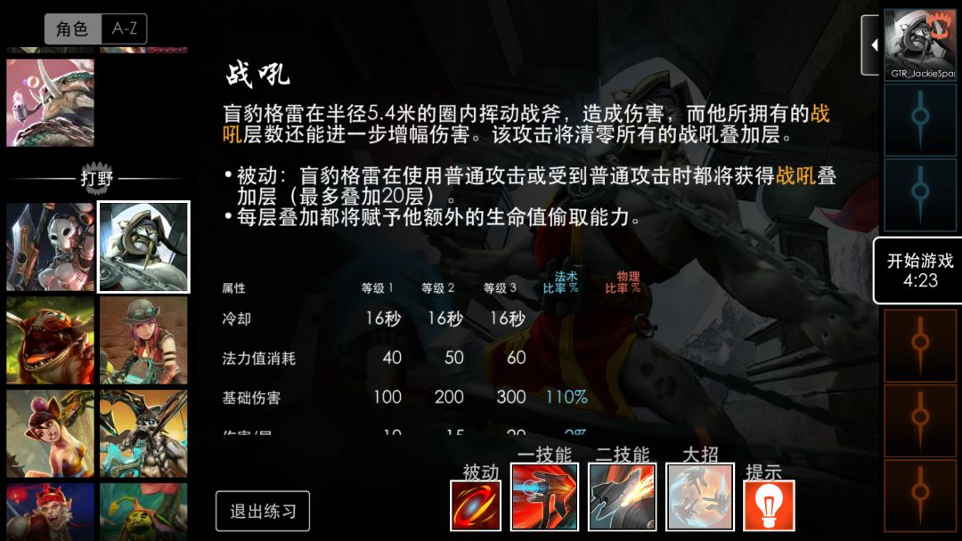 三技能,一定要优先点三技能,因为三技能被动是战吼层,叠加战吼层可以获得吸血的能力,无论是a别人还是被别人a都可以叠,每一层的吸血效果为1%,叠满了就是20%,相当可观。。。