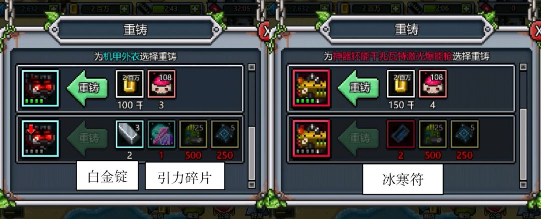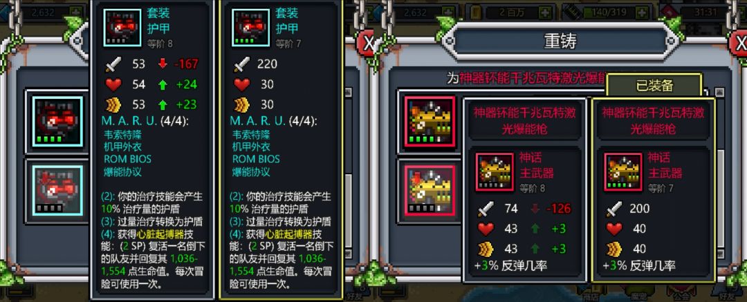 当套装/神话强满时,进入“锻造”中的“重铸”界面,可以发现已经解锁了升阶选项。