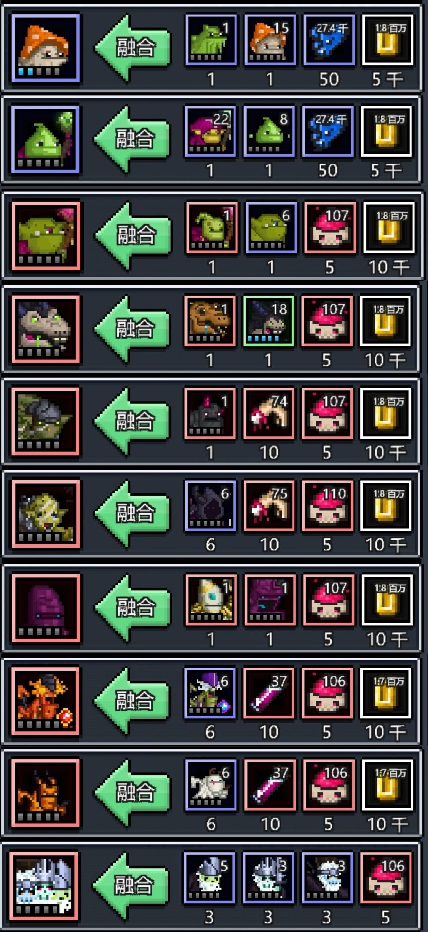 以下是上面魔宠的融合大全,供读者参考: