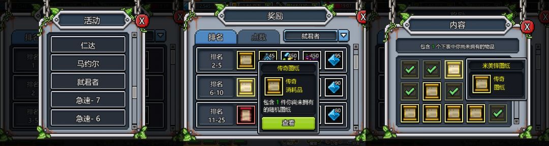 喜欢收集魔宠的玩家,可以打开竞技场活动中的“弑君者”活动,错过活动也没关系。在“奖励”栏目中,可以查看自己是否已集齐常规融合魔宠的图纸。
