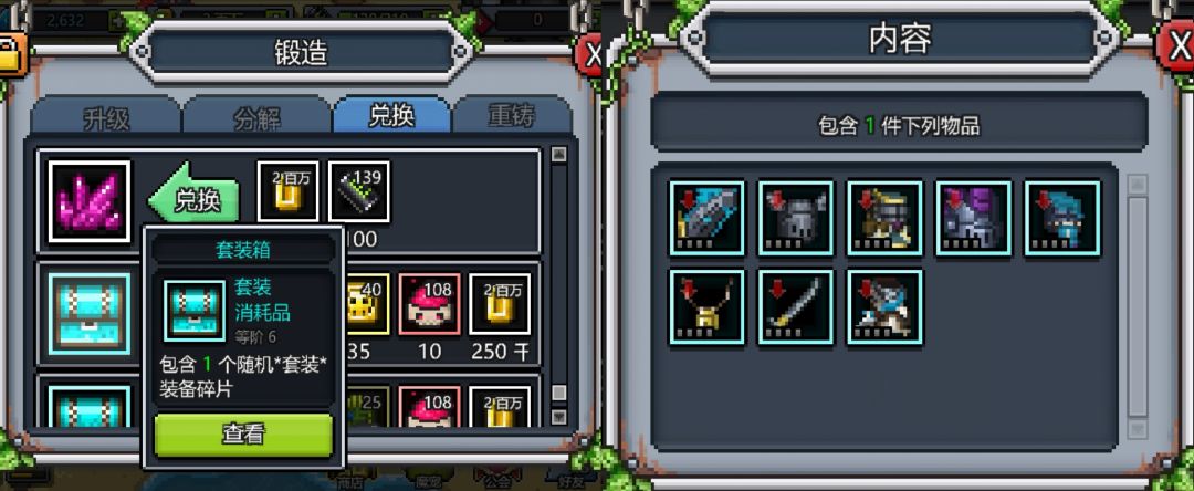 当成功分解一个套装后,打开“锻造”中的“兑换”界面,便发现已经解锁了该等阶套装的兑换界面。