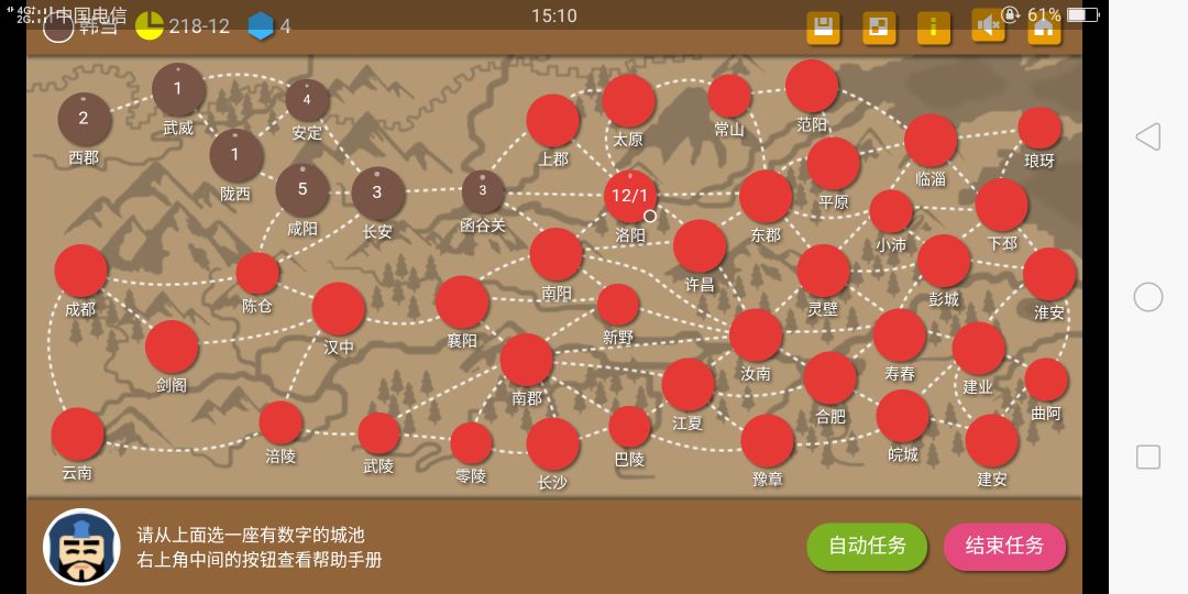 偏安一隅,玩守卫,现在不能自动任务,也不能结束任务了。