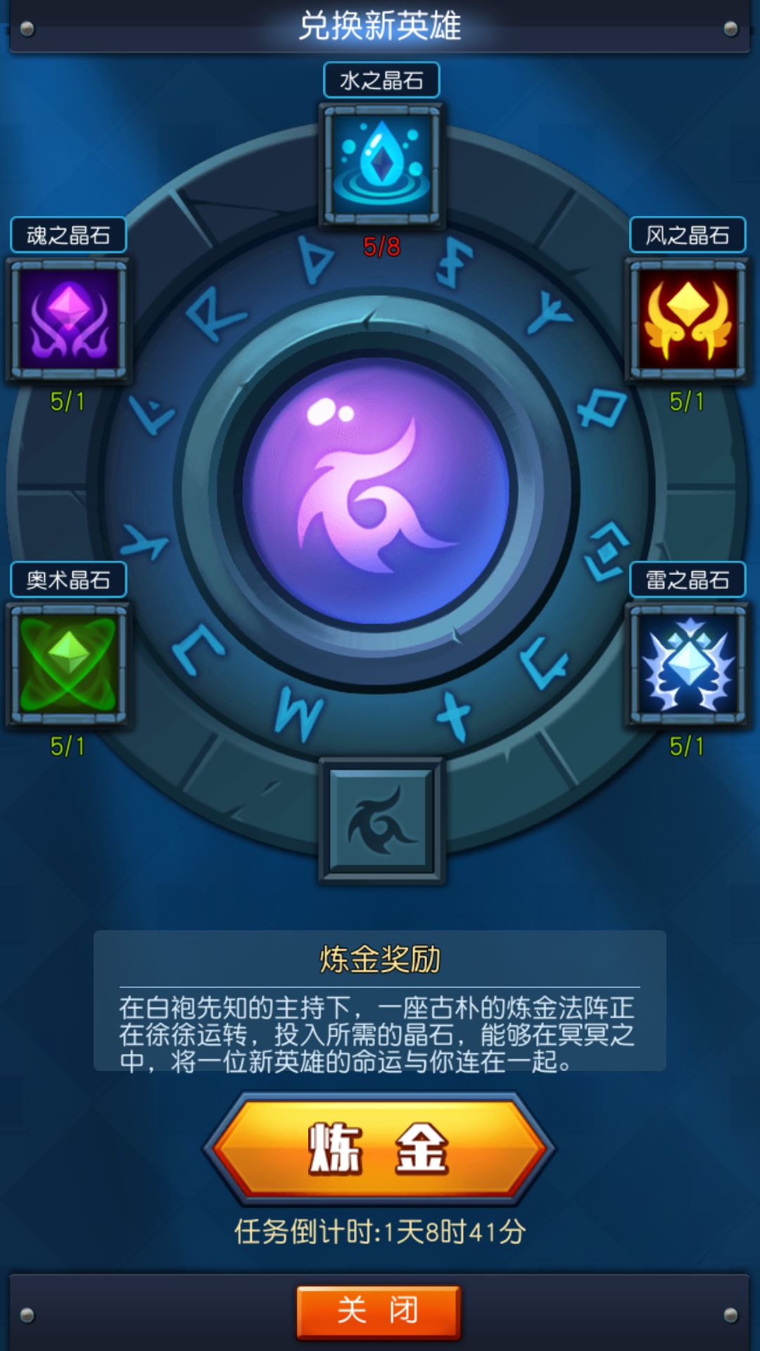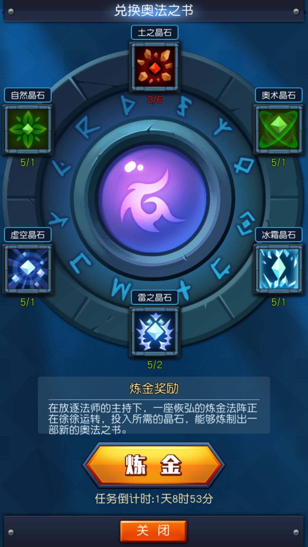 对于这种需求大量晶石的炼金阵,而50魔能才能翻一次牌,并且晶石的出货也是蛮低的,游戏是好游戏而且非常喜欢,在这里只求游戏制作商能降低数据或者提升晶石的出货率。