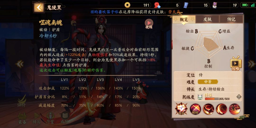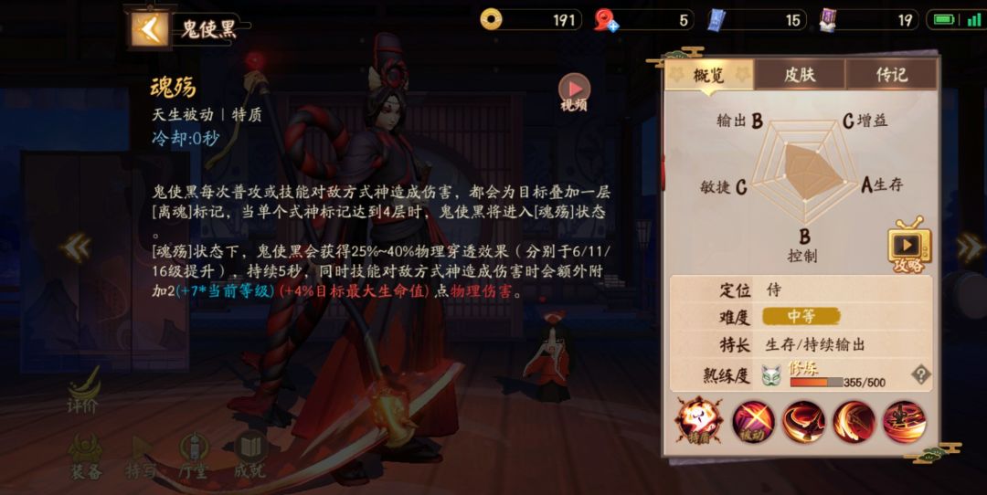 被动特质魂殇:小黑技能和平A(包括强化平A)叠加魂殇状态,叠加四次进入魂殇。效果:物理穿透+5秒对敌方式神额外附加(7*当前等级+4%最大生命值物理伤害)[变态般的属性,对拼尽可能的触发,收益爆高,平安京数一数二的特质]