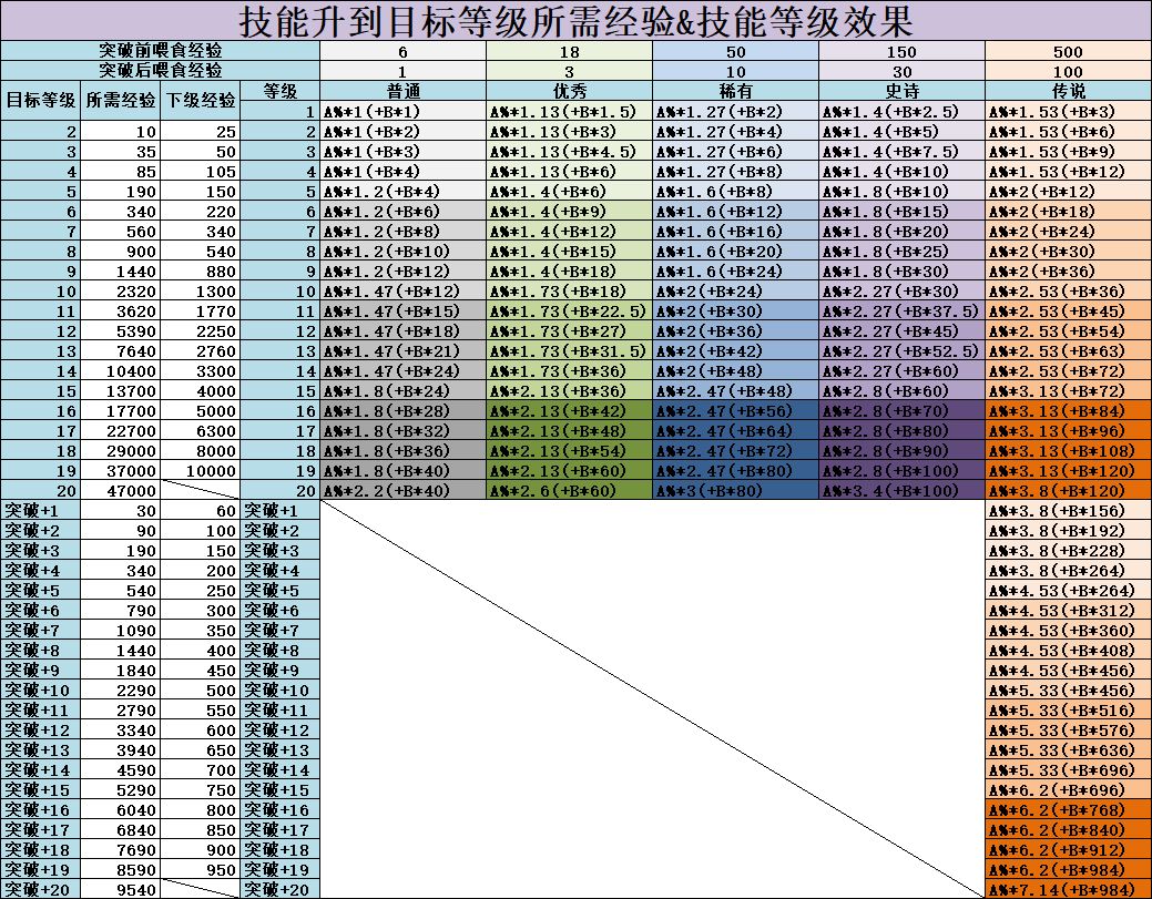 【8月13日更新】技能升到目标等级所需经验&技能等级效果