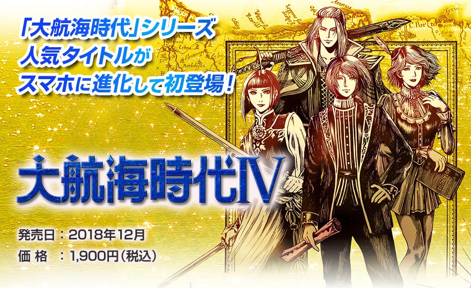 光荣特库摩今日在推特上宣布,将移植《大航海时代4》至手机平台,预计2018年12月中旬发售,售价1900日元,首批购买(前8天)将可获得500日元的折扣。