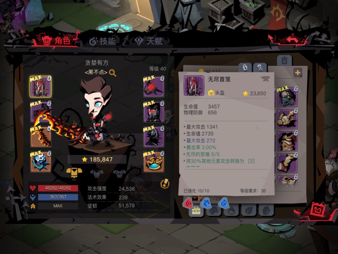 38武器: 自带最大攻:6398 最大攻1136~1411 同上 生命值2282-2833 木攻击424-527