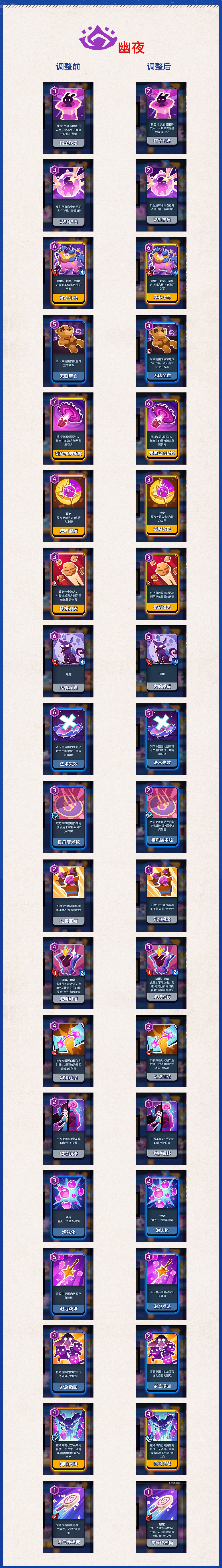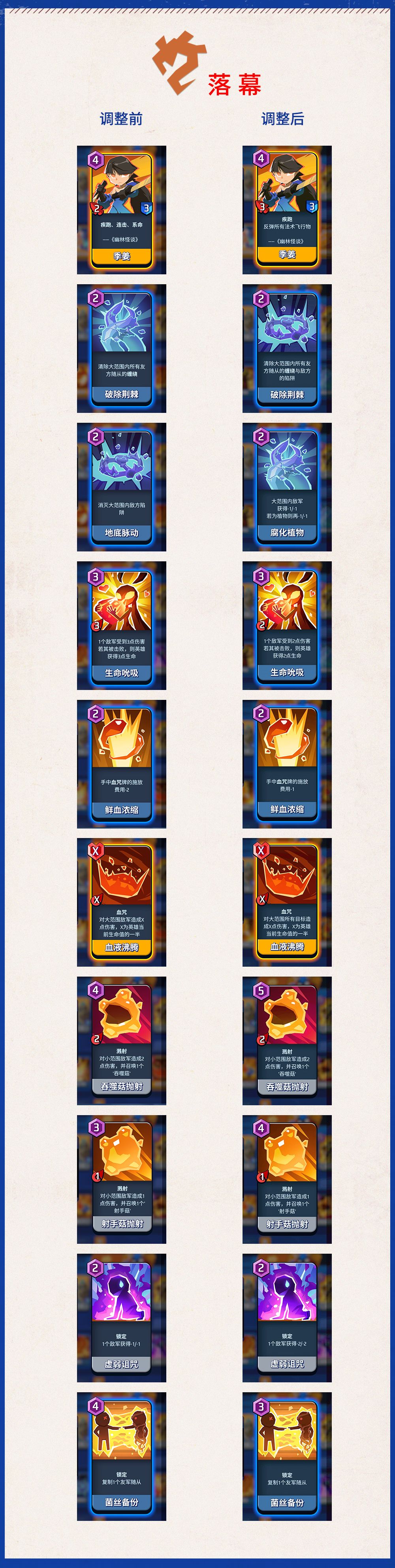 2. 对部分卡牌进行了调整,内容如下:
