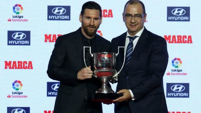 腾讯体育11月12日讯 北京时间11月12日晚,西班牙《马卡报》举行了2017/18赛季各奖项的颁奖礼,梅西获得了上赛季西甲最佳球员称号和最佳射手,奥布拉克当选最佳门将,马塞利诺当选最佳主教练。这是梅西连续第二年包揽两大奖项。