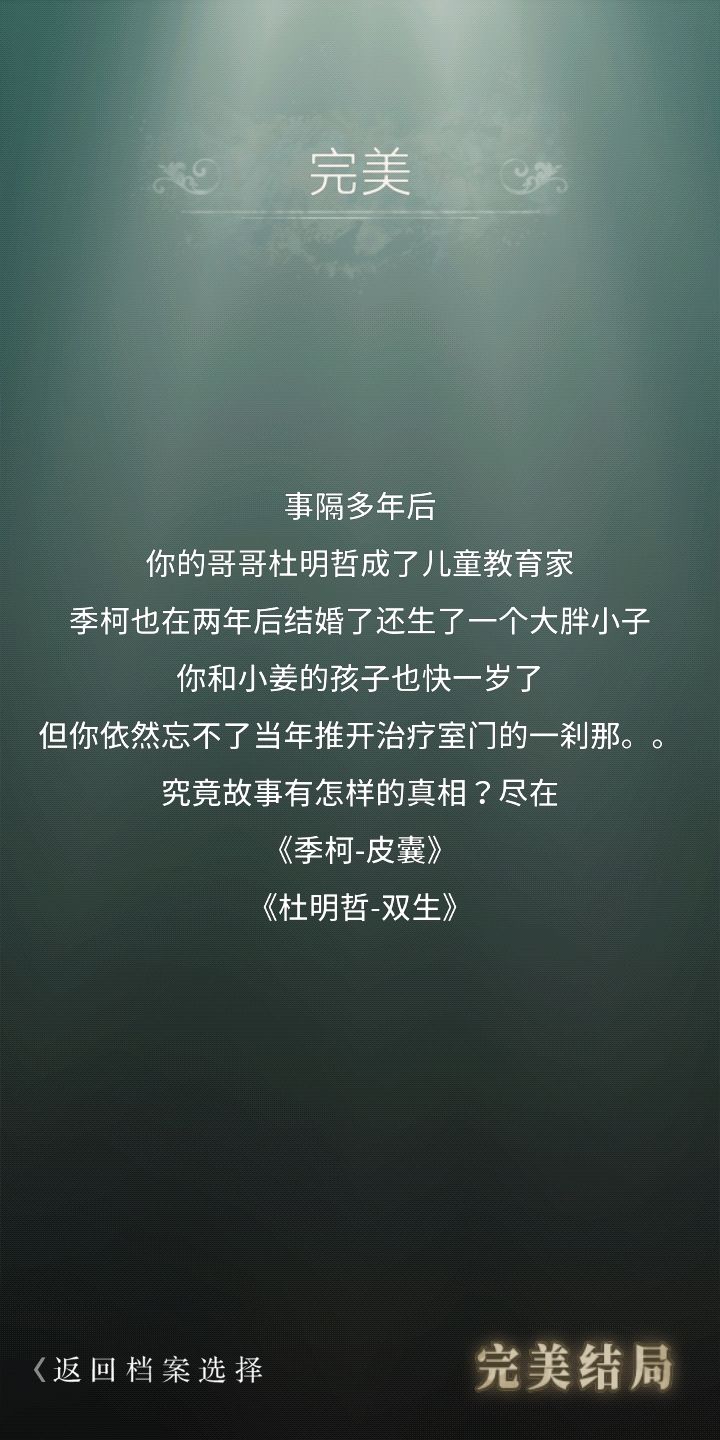 玩了2次 第一次是失败结局 第二次是完美结局 新增了两个故事 感觉剧情线很混乱和模糊 只能按照自己的感觉走
