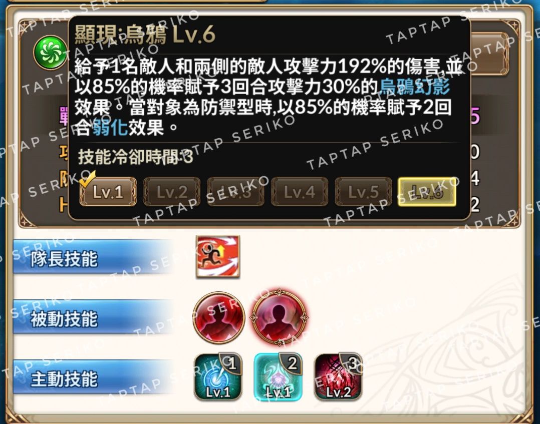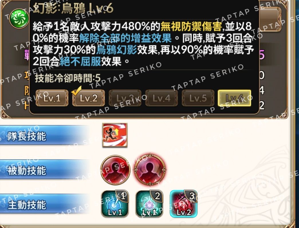 一级比较普通,但是六级增加了对防御型弱化,也就是减少HP上限。基本减少后奶都有机会平A死T,非常好用。