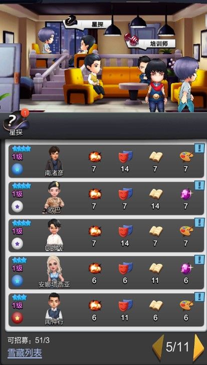 游戏里面可以收集的艺人很多,无论是经典港星还是流量鲜肉,应有尽有。这么多艺人,不可能你振臂一呼他们就云集响应,怎样获取强大的明星来为你所用呢?这就要靠星探系统了。