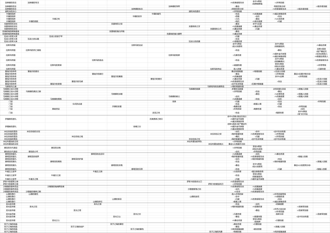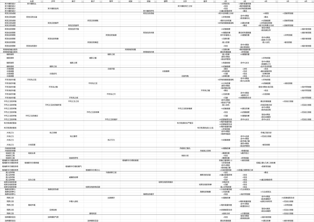 我翻了一下目前好像没有大冒险的套装属性之类的信息,于是我就自己做了一份。