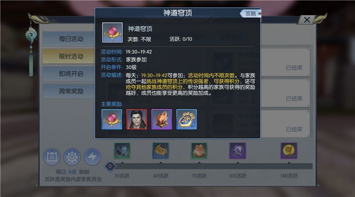 神道穹顶是以家族为基本单位进行的集体活动,每天下午的19:30准时开始,挑战神道穹顶上的强者,活动中道友可以获得积分,还可以去抢夺其他道友的积分,最后以家族中所有成员的总积分进行排名,发放的奖励也以家族拍卖的形式发放。而参与本次神道穹顶的道友将会获得奖励拍卖所得金币的分红。家族排名越靠前所得的奖励也就越多,最后每一位所分得的金币也就越多。神道穹顶金币奖励非常多,可以说是获得金币的一大途径,所以积极参与这个活动,道友才能够钱包鼓鼓哟!