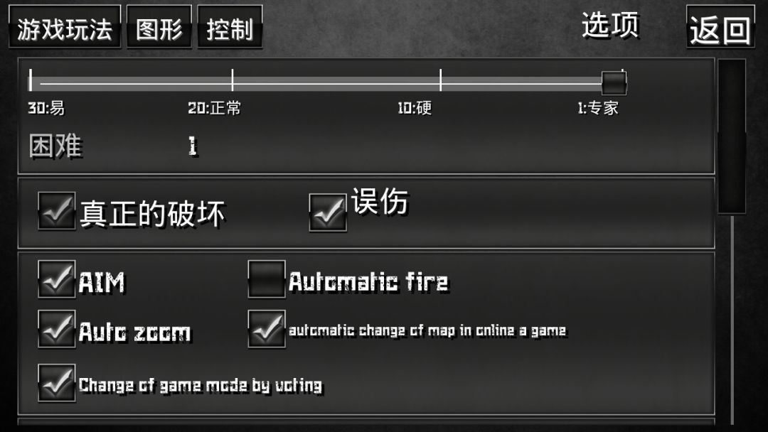 (注:游戏进行时点选这些选项需等到下一轮才能生效。也可以按菜单里的“重启”按钮强行跳过到下一轮)