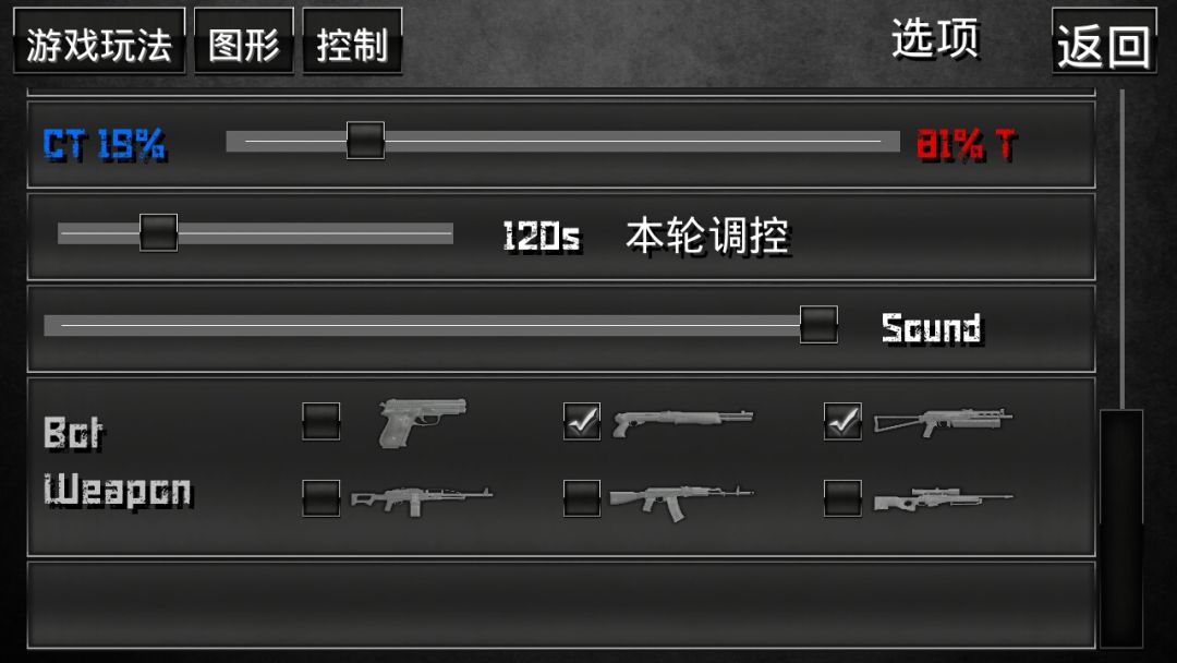 游戏正在进行的状况下,如果你想设置bot不可使用任何枪械,需要把所有武器的√都取消掉,然后重启数轮,直到大家都拿着刀为止。