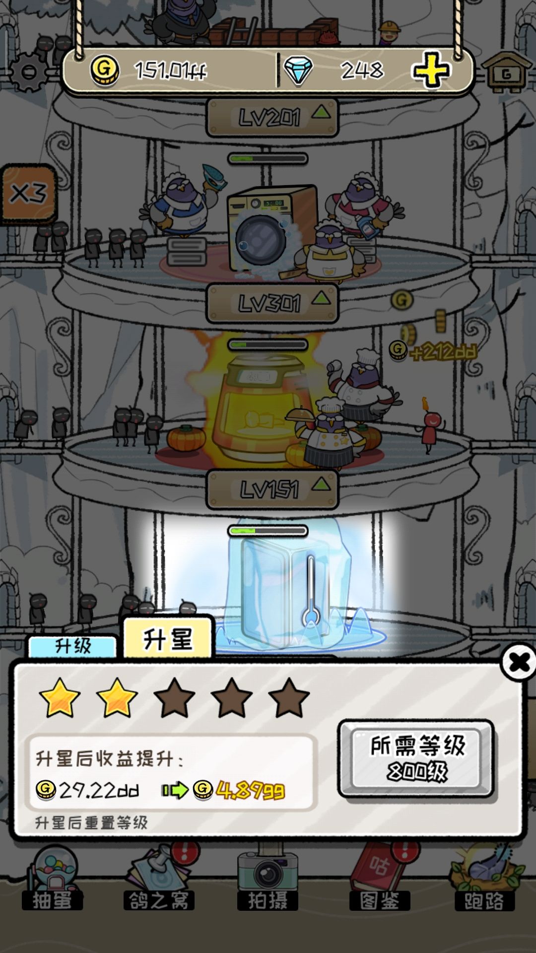 再者就是鸽栏生产速度和种量的问题,鸽栏与相邻鸽栏之间的生产量差距太大,解锁下一个鸽栏的时间越来越长。对于延长玩家玩耍时间是好事,但是对于玩家而言确就比较恶意了。
