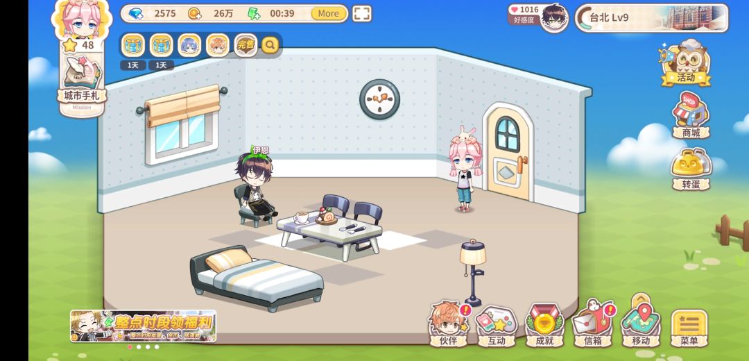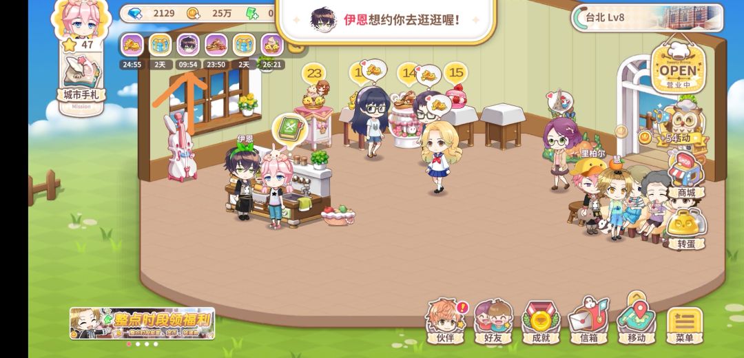 伙伴好感度满150且提醒下班后几率触发,触发时界面右上角(钻石金币体力框下方)会有该伙伴头像,点击可看到详情,选择go,就可以接受伙伴的邀约啦。