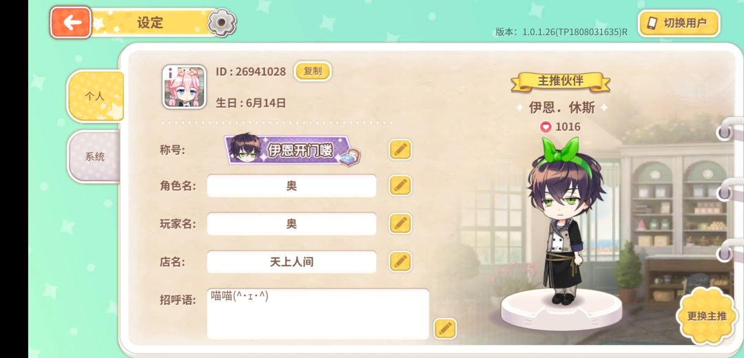 最后,祝每位店长都和心仪的男主开开心心度过每一天啦(厚颜无耻放上个人界面,加我加我呀,我很活跃的,谢谢!)
