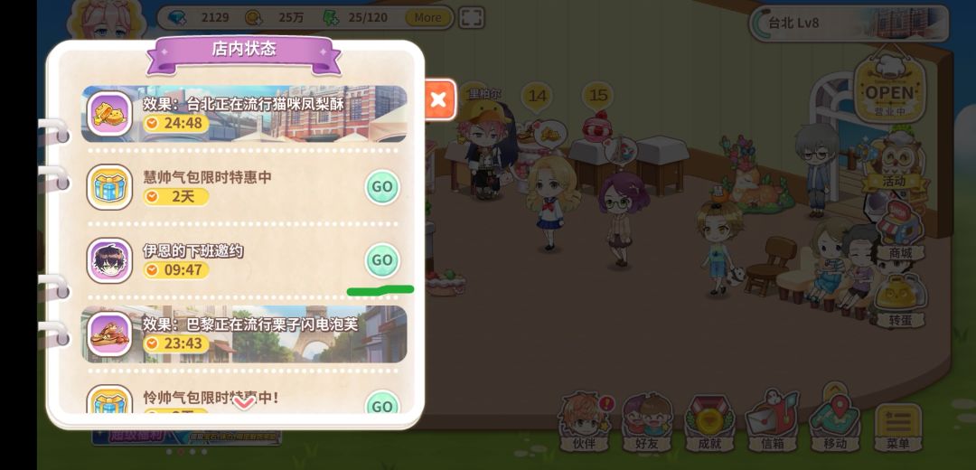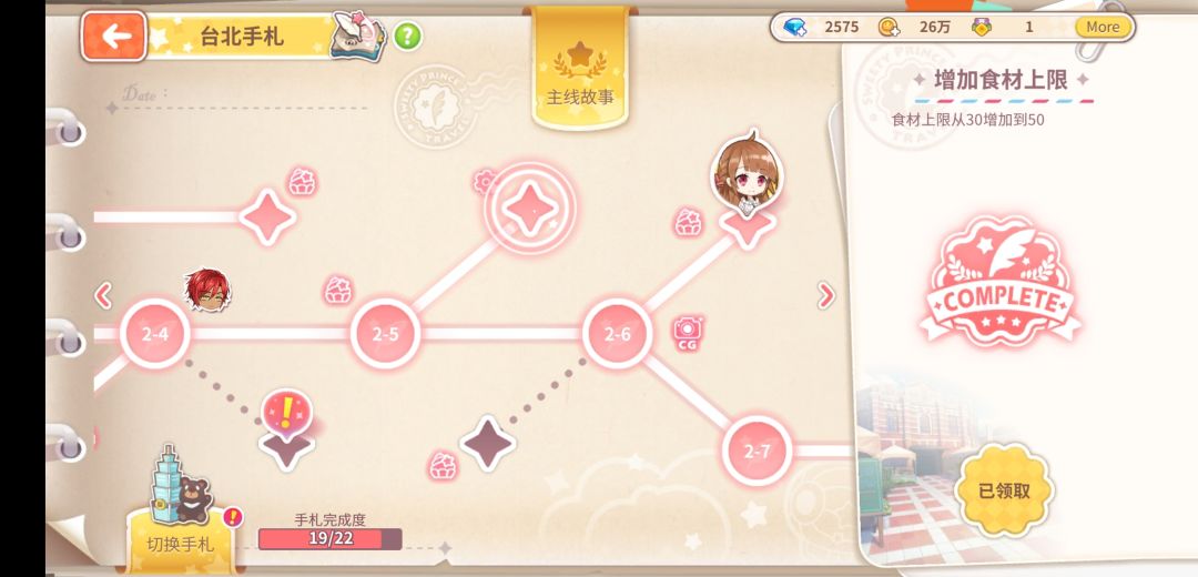台北:2-5支线解锁增加食材上限(购买上限50,伙伴采买上限500)