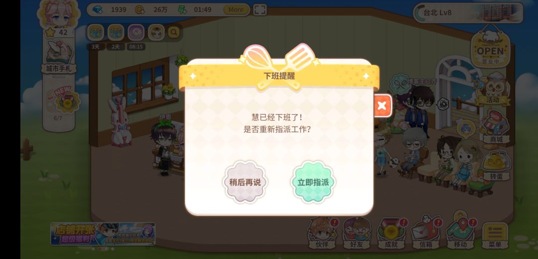 如果不改变人选,可在伙伴提醒下班的时候点击伙伴,会出现提示框,选择立即指派,无需进入伙伴界面重新指派。