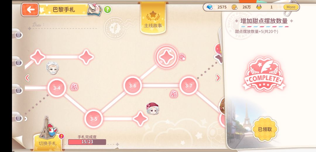 巴黎:3-6支线解锁增加甜点摆放数量