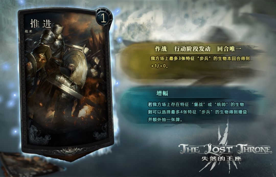 以上就是有关推进的介绍啦~后续内容会在近期持续更新~欢迎大家加入我们的qq群与设计师以及其他同样喜欢卡牌游戏的玩家们来分享你的想法和体验~失落的王座|前哨营地:909384372