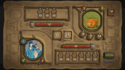 而通过计算双方的手牌以及牌库内容,通过合理使用不同技能资源最后获得胜利,则是需要玩家需要思考的内容。注意,并不是一直攻击才是唯一的获胜手段,游戏中有许多可以让敌人自取灭亡的手段。(反击伤害,疲劳伤害等等)