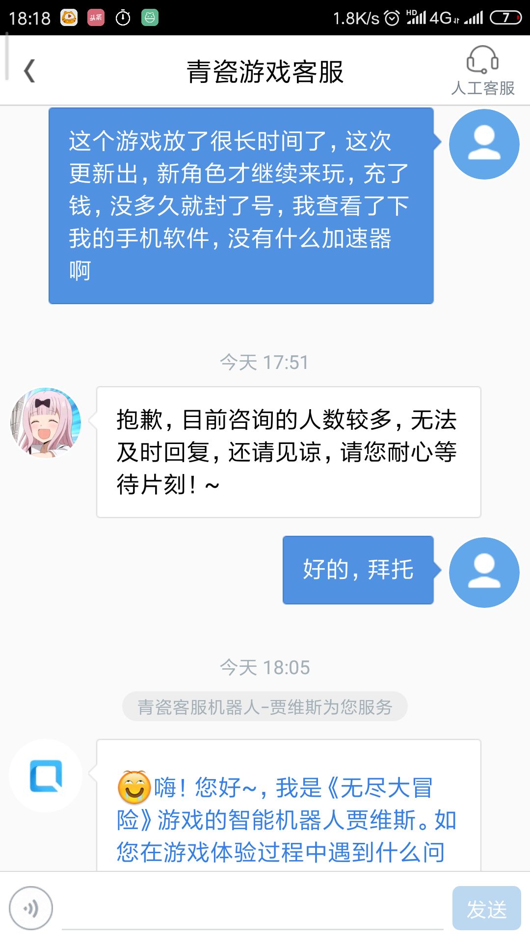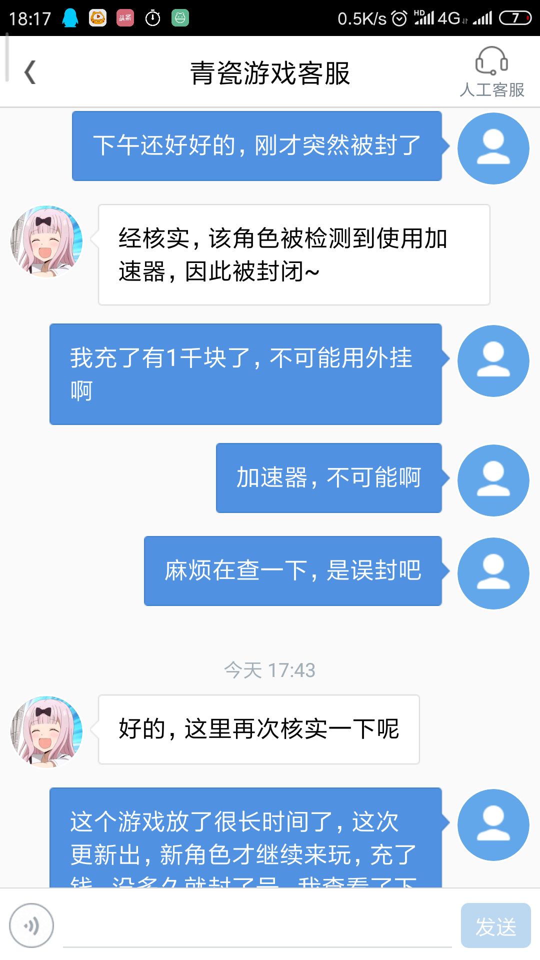 新区一开区就开始玩,手动加离线玩了一下午吧,结果5点左右上线收个菜,突然就下线了,再登录就封停。
