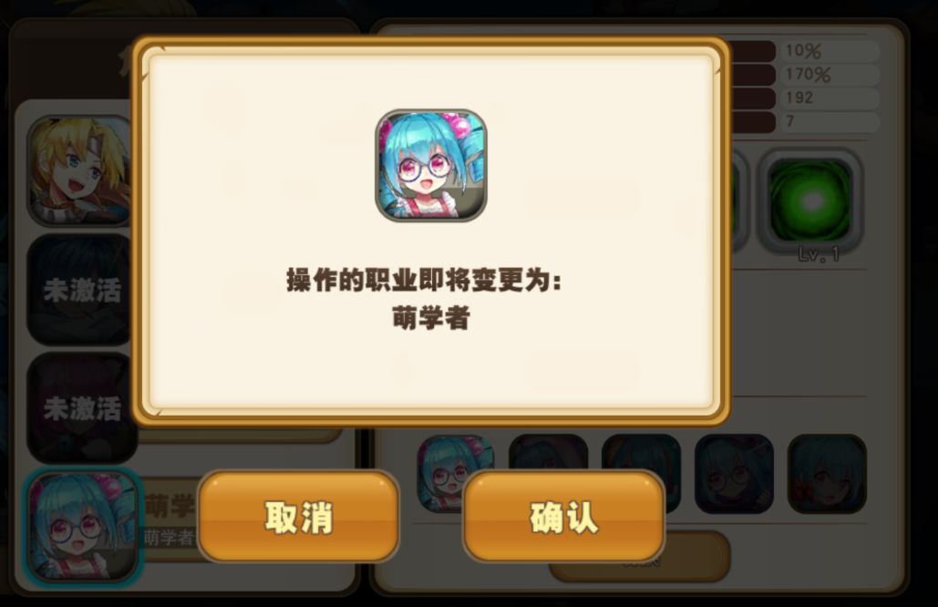下图左上角,原来可以使用的角色,转生后变成绿色的 1转 文字。