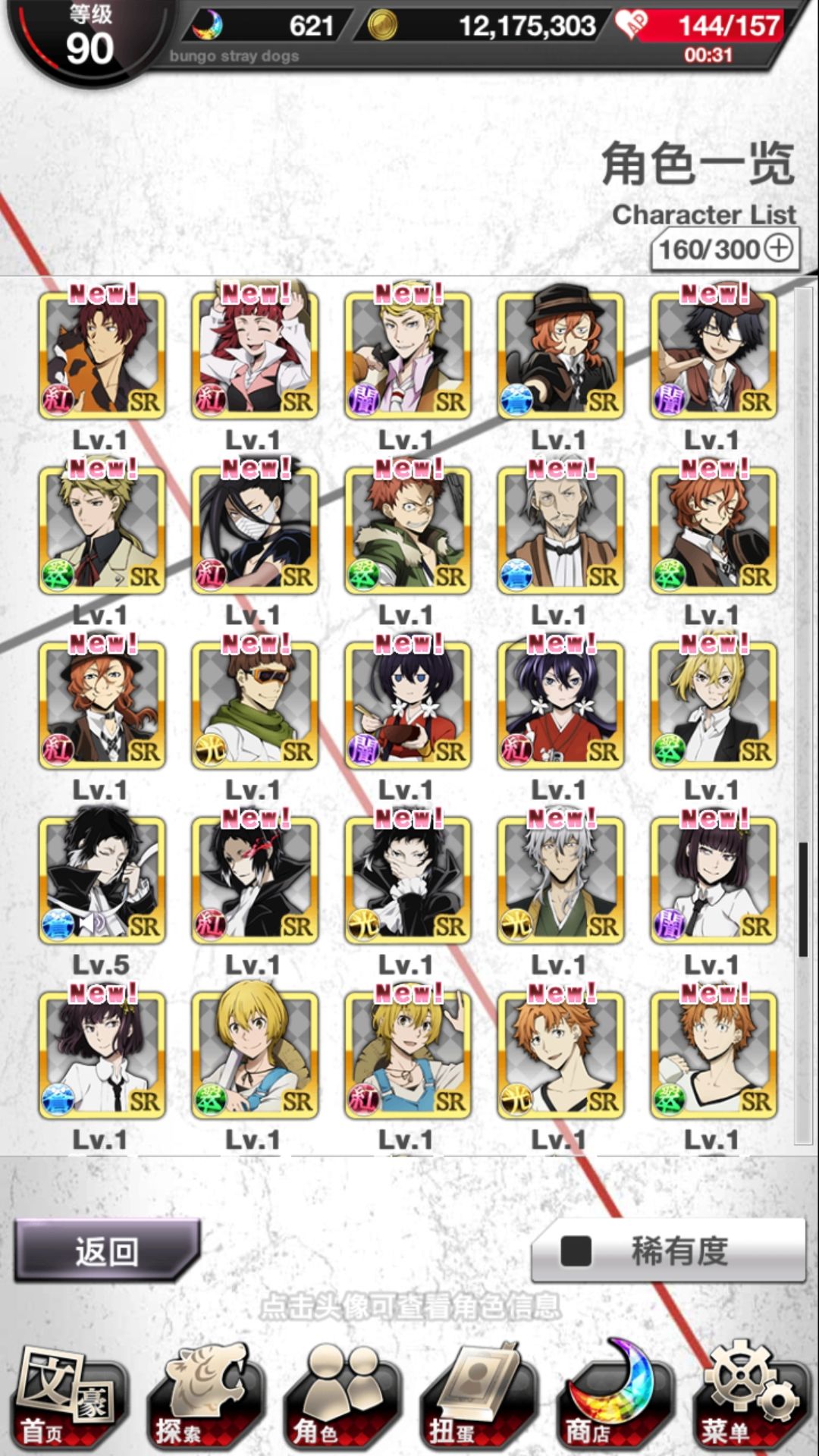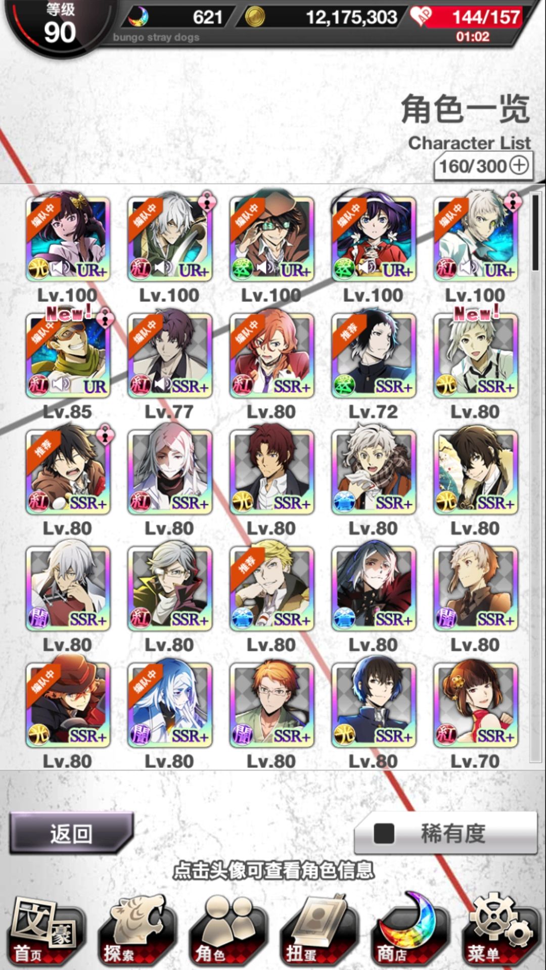 下面是我的卡,虽然是开服玩到现在,但根本肝不起来。上学就星期天一天搞搞活动的关,主线还是这个寒假疯狂打才打完的。中途还弃了一段时间,一般活动卡池都会抽,但异能节的就另说了。。。就酱。