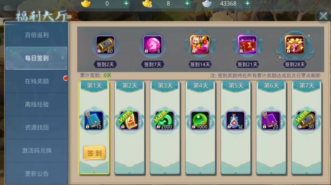 1. 每日签到:每天签到打卡,可以领取相应道具,1到7天丰富奖品等你来拿