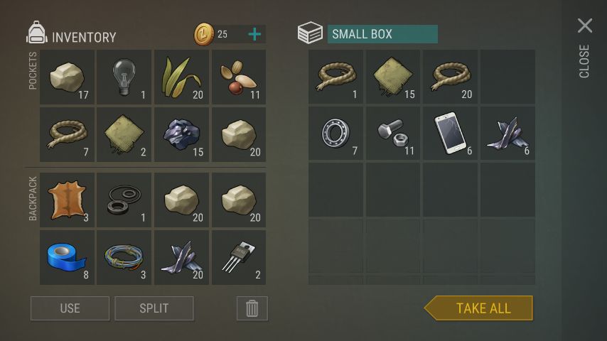 丹滕:哈哈刚刚去了趟1级资源图满载而归!开心!全放箱子里(双击物品可以直接入箱子)