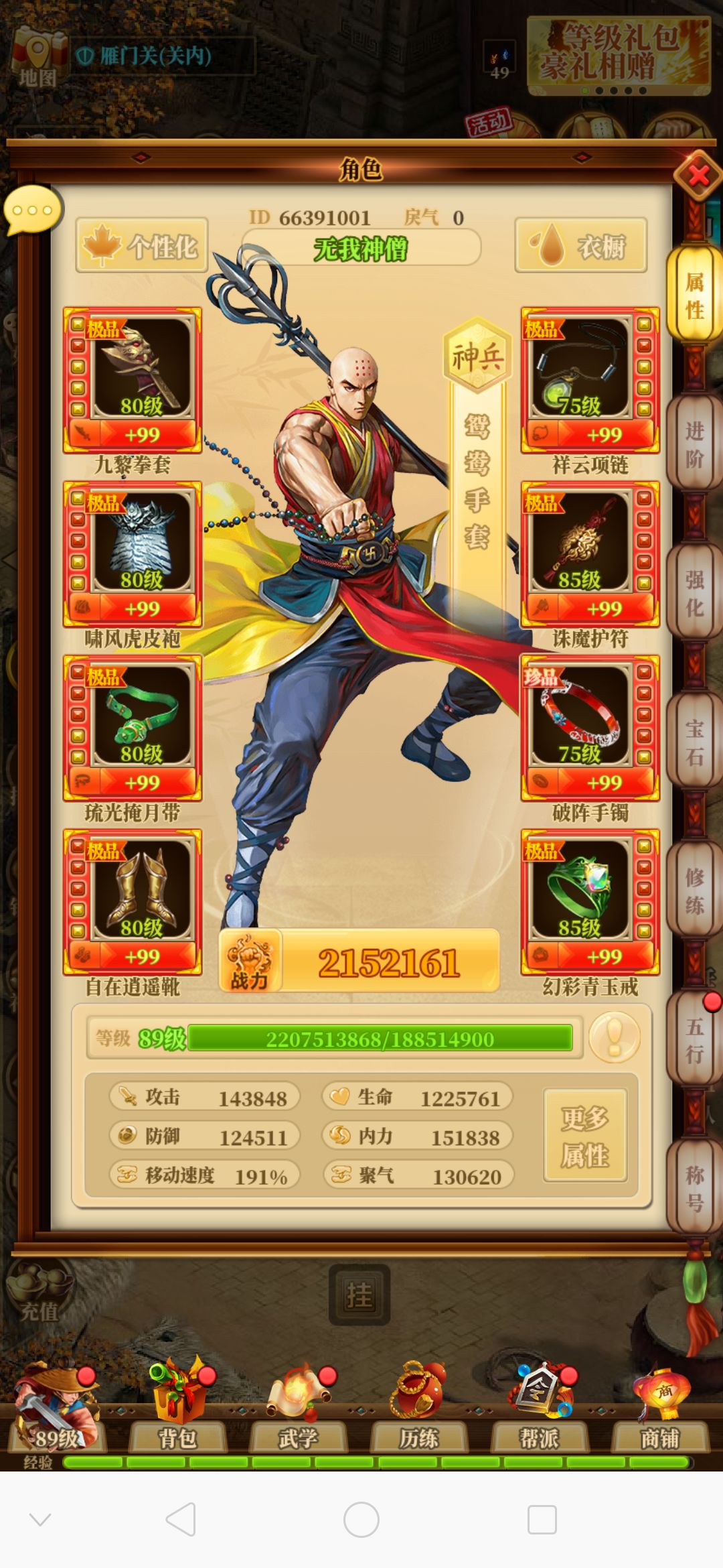 下面放出问天大的面板(23区,攻击高的吓人)
