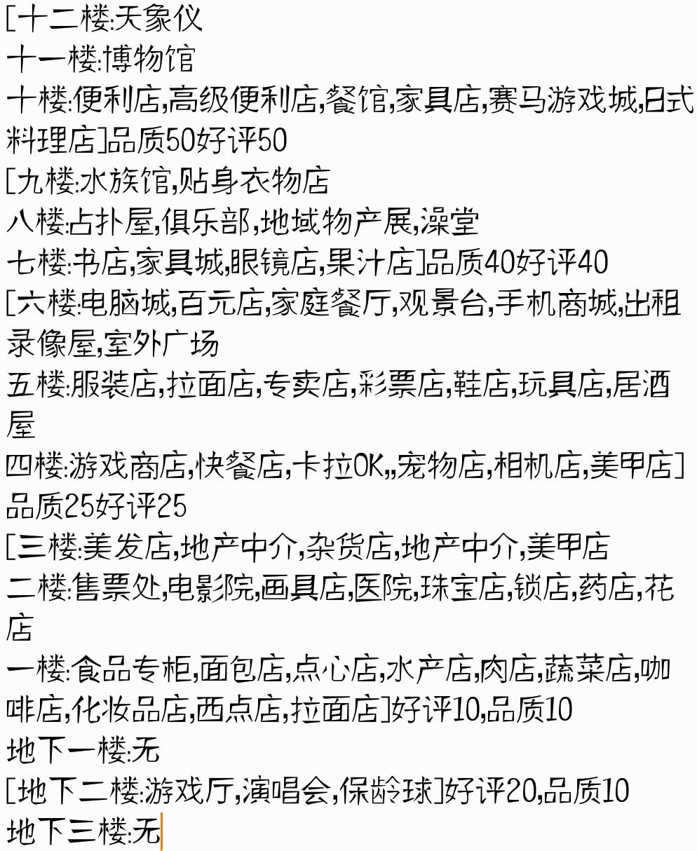 因为之前找攻略一直没有找到契合度的攻略 所以自个整理了下,大概就是这样,有可能有店铺有两份楼层都有,因为我开美甲店一不小开了两家,三楼四楼都有契合度,就是有点懒得再去测了emmmm,欢迎来补充,看着楼层契合度跟楼层辞典自己排列店的次序也是挺好玩的,不用去直接照搬别人哒