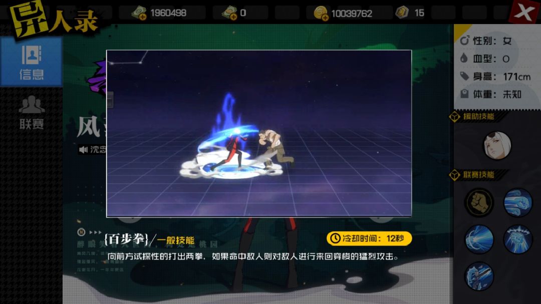 二技能百步拳,通过近距离的拳法进行试探攻击,判断后续状态。一旦试探攻击命中敌人,会对敌人进行来回穿梭的连续攻击,最后一击会造成击飞效果。因为其技能的起手距离较短,很容易被躲闪,往往用于对浮空状态的敌人补伤害,并进行持续打击。