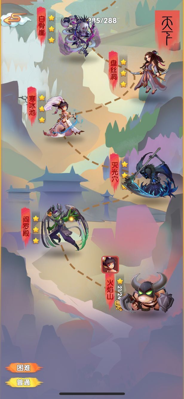 3说下过图。有控制会好过很多,困难图就已经很变态了,期待后面的地狱模式,和噩梦模式。图分为天上天下两个模式。天下比天上难一些,但是可以同步过来获得碎片早日升星英雄。目前本人已全三星通关天上模式,天下模式只剩最后一个boss,因为等级肝不动未通。如果满级应该是能三星通的。