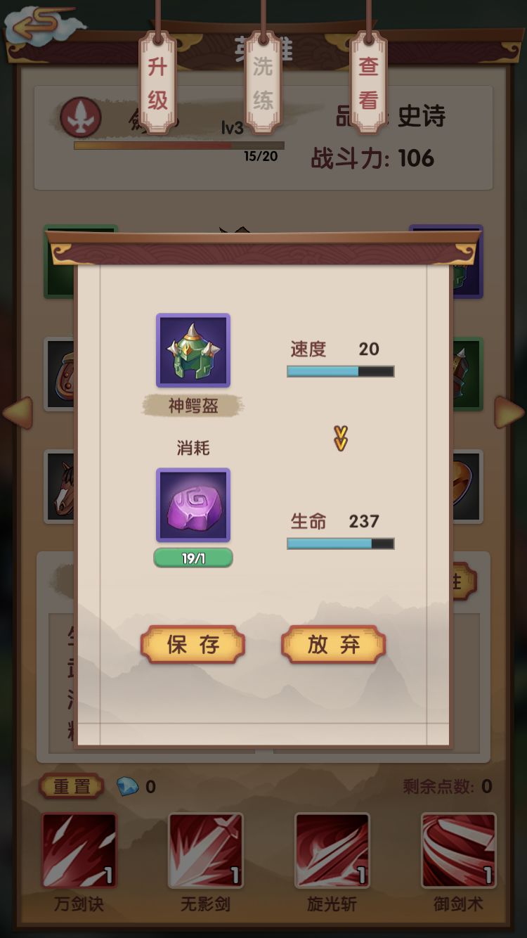 1剑仙。初始人物,过关有奖励碎片,前排英雄,输出型。很容易到达满星。