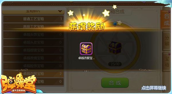 方式简介:除了上述两种方式之外,工艺系统也是我们在手游中获取时装的重要途径。《弹弹堂手游》工艺系统中提供了分解、合成和宝箱3大功能。玩家可以将自己过时的、不需要的永久或限时时装分解获得工艺宝箱碎片,随后将收集满的工艺宝箱碎片合成为对应品质的工艺宝箱,之后便能随机开启出永久时装。过期的限时时装还能兑换永久同品质时装,简直不要太划算。