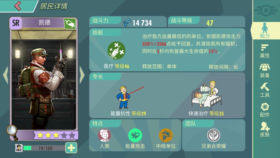 那再讲一下凯特!凯特在前期的时候,是一个前排控制,为什么说它必练呢?因为一旦练成了,有了义勇军配件,那这些boss,就只能乖乖普攻,这时候你只用把凯特练肉,那你的后排就可以输出!那为什么要练凯德呢?凯德是一个高单奶,而且他可以全清辐射,没有听错全清,在打崔尼蒂塔时,他绝对是一个保护后排和前排的一个绝对保障,