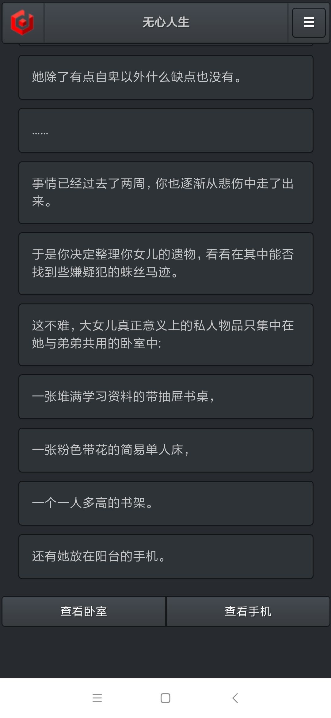 再次点查看书桌→查看抽屉→物理试卷点掉,自动回到卧室